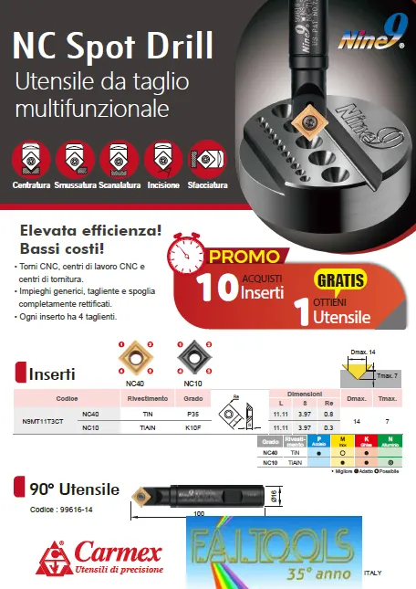 Ancora valida la nostra promo KYOCERA 30+10; ad esaurimento scorte 30 + 10 COMPRI 30 INSERTI e/o PORTAUTENSILI con la scontistica a te dedicata (anche di grado o tipologia diversa) RICEVI 10 INSERTI che ti interessano in omaggio (l'omaggio è sull'articolo meno costoso del pacchetto) Cerca tra gli inserti che trovi nel link allegato. Promo valida fino a ESAURIMENTO SCORTE